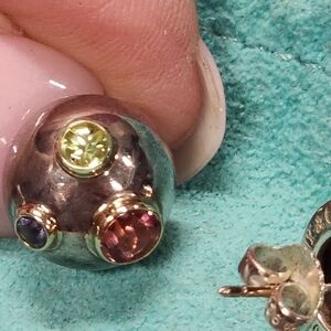 Add a touch of elegance to your ensemble with these exquisite Tiffany earrings featuring stunning multicolored gemstones. Perfect for any occasion, these earrings are a timeless addition to your jewelry collection.