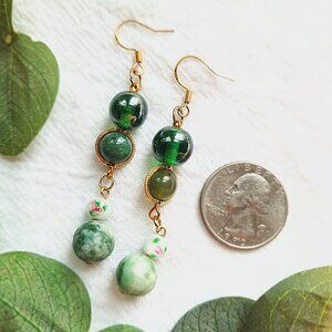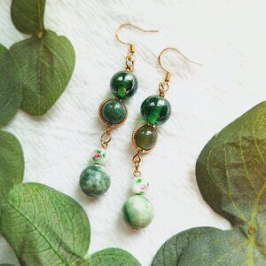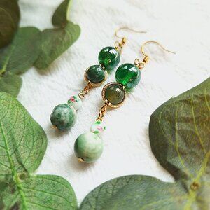 Enchanted Forest Boho Earrings – Green Jasper, Agate & Floral Glass Beads