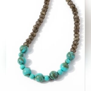 This stunning necklace features a blend of turquoise and brown beads, perfect for adding a touch of elegance to any outfit. Ideal for both casual and formal occasions.