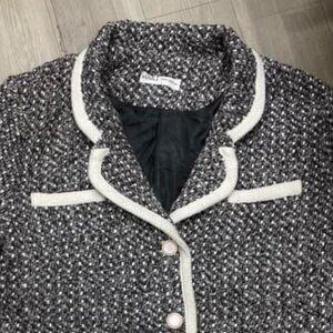 Sophistication in every stitch ✨ This Parisian-style tweed jacket is a timeless wardrobe staple. Featuring creamy white piping, polished pearl buttons, and structured tailoring—it pairs perfectly with trousers, skirts, or a little black dress.