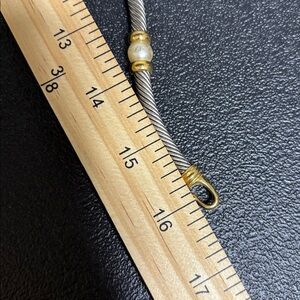 Elegant Two Tone Silver Gold Hampton Choker Cable Pearl Beaded Necklace