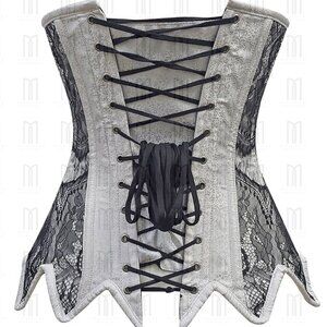 Lined with 100% cotton twill, this corset ensures all-day comfort, while the nickel brass grommets and polyester laces at the back allow for perfect adjustability. A modesty panel at the back adds additional coverage, making this corset ideal for both styling and waist training. Available in beautiful brocade fabric, this piece is designed to complement any outfit with timeless elegance.