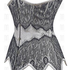 Enhance your silhouette with this exquisite Underbust Brocade Corset featuring a delicate eyelash lace overlay and a sophisticated pointed bottom design. This corset is expertly crafted with a high-quality stainless steel busk closure in the front, providing secure and easy fastening. The durable spiral and static steel bones offer optimal support and a flattering waist-cinching effect.