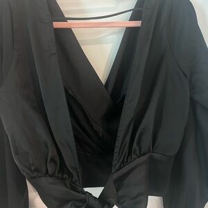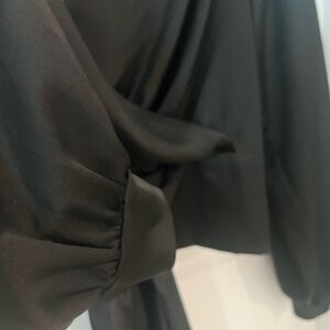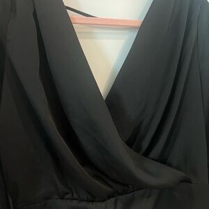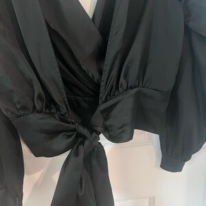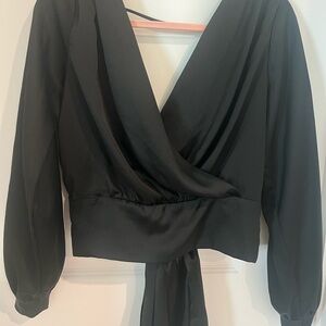 Elegant V Neck Black Satin Wrap Top Size Medium