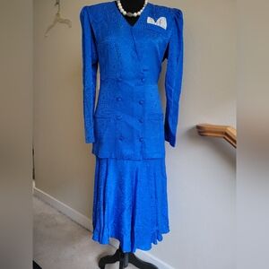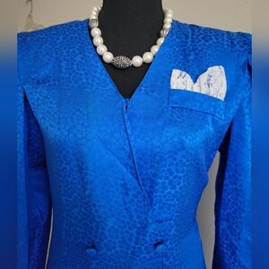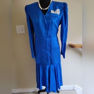 Elegant VTG ARGENTI Blue Long-Sleeve Silk Dress Size 6