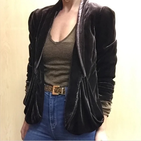This elegant velvet jacket offers a sophisticated touch to any outfit. Perfect for both casual and formal occasions, it features a luxurious black color that complements any wardrobe.