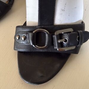 Step out in style with these elegant black women's closed heel with 3 1/2 inch stack heel. Soft upper leather and al leather sole. Subtle silver trim. Perfect for any occasion, these shoes offer both comfort and sophistication. Very good condition.