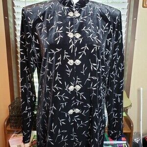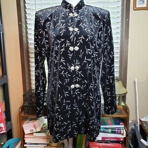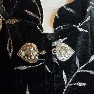 Elegant Vintage 90s Womens L Black Velvet with Silver Bamboo Dress Jacket