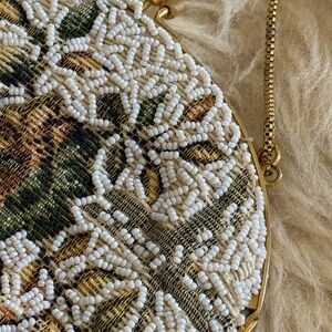 This elegant vintage beaded floral bag is perfect for any occasion. The intricate design features a blend of cream and brown tones, adding a touch of sophistication to your outfit. Ideal for evening events or casual outings. In great condition.