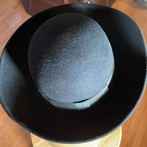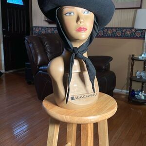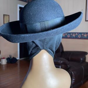 This elegant 100% wool black women's hat made in USA, is perfect for any occasion. Its sleek design adds a touch of sophistication to your outfit.