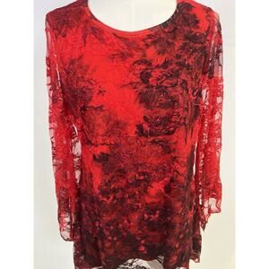 Elegant Vintage Brittany Black Red Lace Women's Top Size M Wimsigoth Romantic