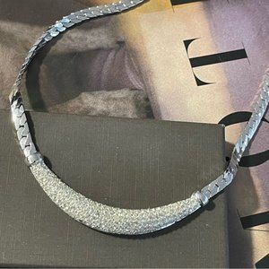 ✨Elegant Vintage Christian Dior Rhinestones Snake Chain Silver-tone Necklace