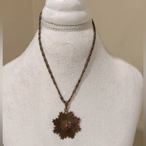Elegant Vintage Copper Starburst Pendant Necklace Retro Rare Dramatic