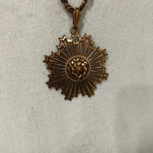 This stunning copper starburst pendant necklace adds a touch of elegance to any outfit. The intricate design and warm copper color make it a versatile accessory for any occasion.