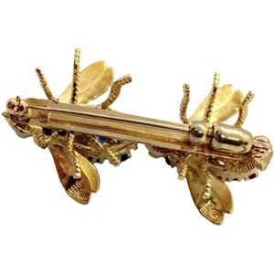Elegant Vintage Diamond Ruby Sapphire 18K Gold Double Bee Brooch Pin Retro