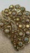 Materials: It features a gold-tone metal setting and numerous prong-set glass rhinestones with an Aurora Borealis finish, which gives them an iridescent shimmer reflecting various colors.