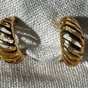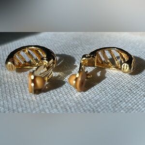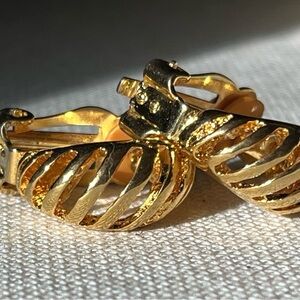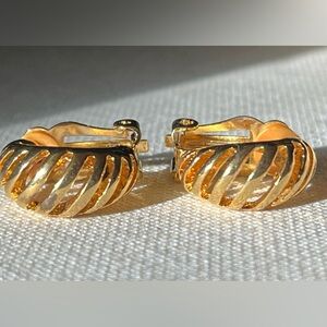 Stylish gold clip-on earrings with a unique design. Perfect for any occasion.