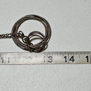 Elegant vintage gold-tone necklace featuring a double circle pendant design. Secure lobster clasp closure ensures durability and style. Weighs 0.8 oz.