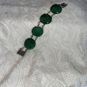 This elegant vintage green aventurine bracelet adds a touch of sophistication to any outfit. Perfect for any occasion. Vintage Mexico Silver