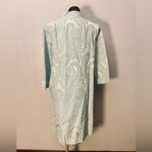 Handmade 1960s aqua blue paisley print jacket coat with 3/4 sleeves and 2 pockets coat. Fits S-M. Shown on size 4 mannequin. Some overall fading in lining but not visible when worn. Outside is in like new condition!