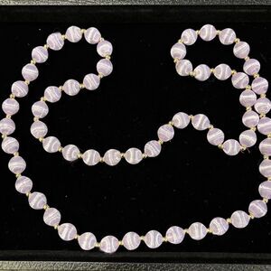 Vintage lavender thread wrapped silk Pearl necklace. Gold tone beads in between the beads. Perfect for adding a touch of elegance to any outfit. Excellent condition with no straggling threads.