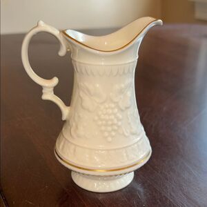 Vintage Lenox porcelain creamer or small pitcher, likely part of the "Beverly Collection” featuring embossed grapes and gold trim