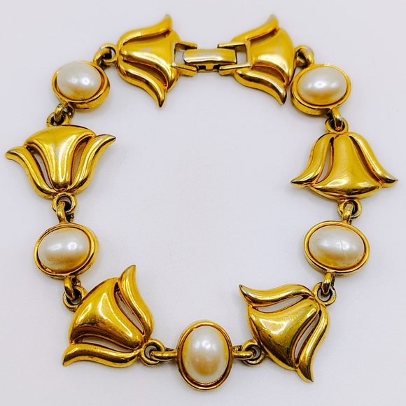 Elegant Vintage Monet Gold and Pearl Bracelet