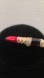 Add a touch of glitz and glamour with this elegant red and gold lipstick brooch. Perfect for any occasion.