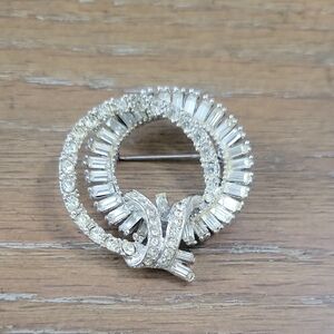 Elegant Vintage Silver tone Rhinestone Crystal Brooch with bow look