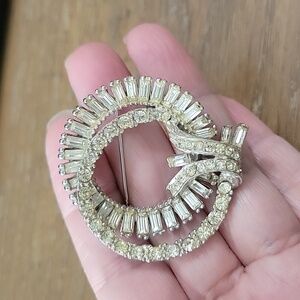 This Vintage stunning silver tone brooch features sparkling Rhinestone crystals, perfect for adding a touch of elegance to any outfit. No markings