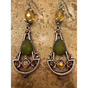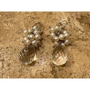 Elegant Vintage Sterling Crystal & Pearl Cluster Earrings Set With Vintage Green