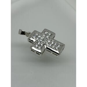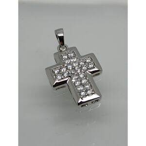 Elegant Vintage Sterling Silver Cross Pendant with Sparkling White CZ Stones