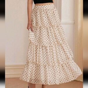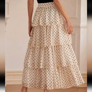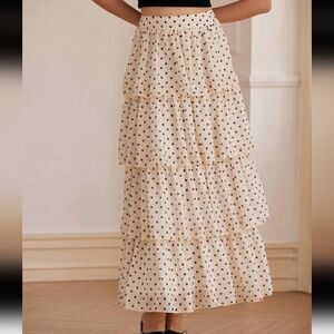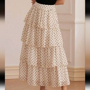 Elegant Vintage Style Chiffon Polka Dot Print Multi-Layered Ruffle Long Skirt