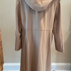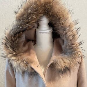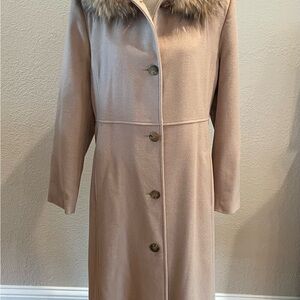 Stylish and beautiful vintage Marvin Richards long wool/cashmere coat with a luxurious fur collar. Perfect for a sophisticated look. Satin acetate full lining. Sz 16- equivalent to large.