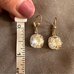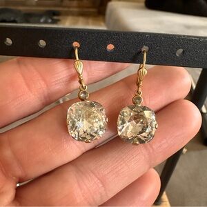 Elegant Vintage-Style Gold Leverback Earrings Cushion Cut Crystal Drops Sparkle