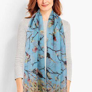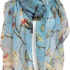 Elegant Voile Scarf with Birds & Blooms — Nature-inspired charm for all seasons.