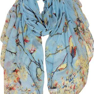 Elegant Voile Scarf with Birds & Blooms - Large 33.4"Wx70.9"L for All Occasions