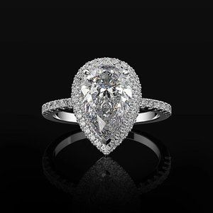 Elegant Water Drop Bright Zircon Thin Pear Wedding Ring for Women, PD510