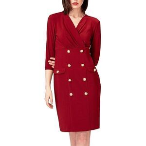 Elegant Wear to Work Office Business 3/4 Sleeve Buttons Red Blazer Dress XXL NWT