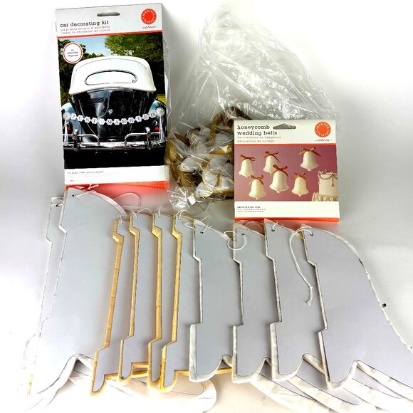 Elegant Wedding Decor Lot: 34 Honeycomb Bells & Just Married Banner