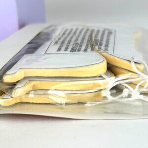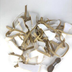 24 white 4 inch tall, 3 inch wide with gold ribbon