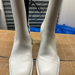 Step out in style with these elegant white ankle boots by ZARA. Perfect for any occasion, these boots offer both comfort and sophistication. Features a square heel for balance and comfort. Brand new with tags.