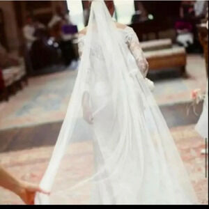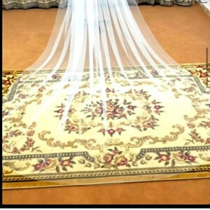 Complete your bridal look with this elegant white veil. Perfect for adding a touch of sophistication to your wedding ensemble.
