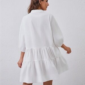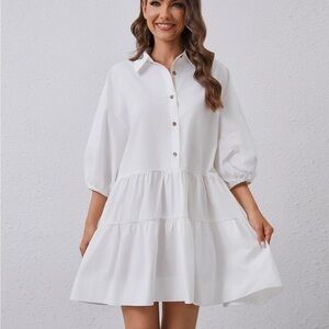 This elegant white button-up dress is perfect for any occasion. Its classic design and comfortable fit make it a wardrobe essential. Brand new