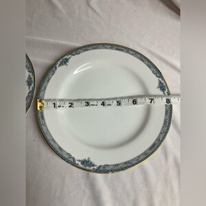 Enhance your dining table with these elegant white dinner plates, beautifully accented with blue and gold. Perfect for both casual and formal dining occasions. Two plates