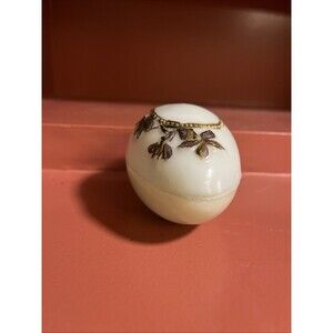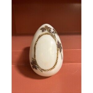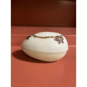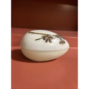 Elegant White Egg-Shaped Trinket Box with Floral Detail