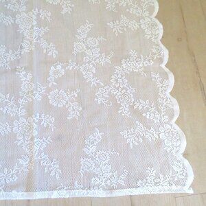 Vintage Elegant White Floral Lace Curtain Panels 58"W X 96"L Scalloped Edges Set of 2