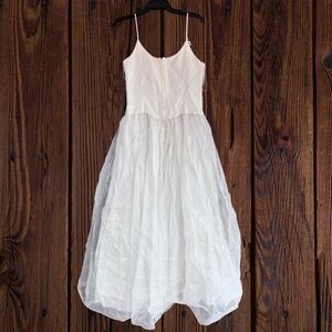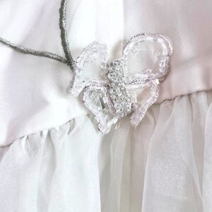 This elegant white gown features delicate floral embroidery, perfect for special occasions. Its charming design and soft fabric ensure comfort and style for your next formal event.