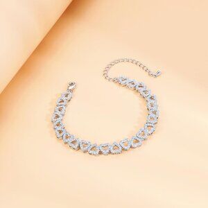 Elegant White Gold Plated Cubic Zirconia Heart Bracelet for Women Bridal Party