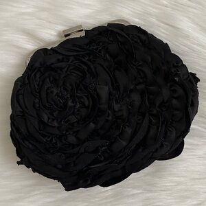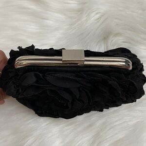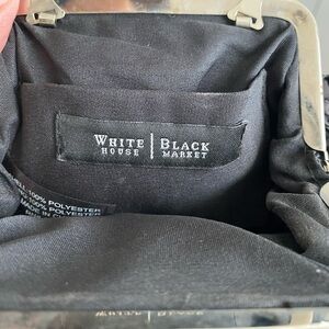 Elegant White House Black Market Black Floral Motif Evening Clutch